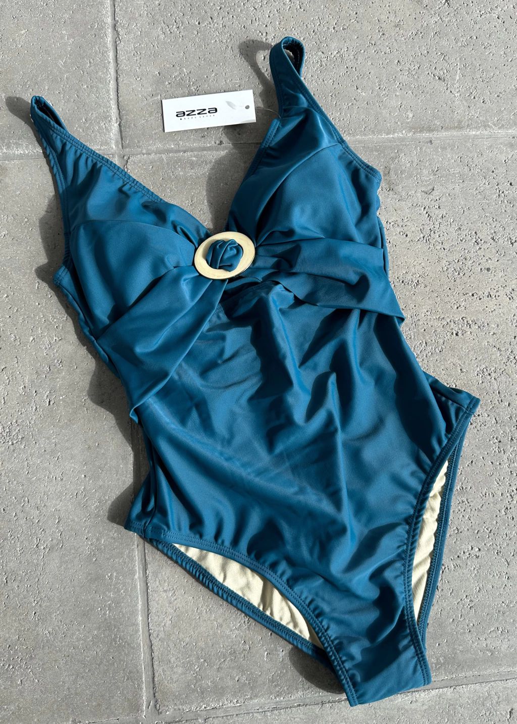 Malla entera lisa con detalle de hebilla en el centro de busto. Esta integramente forrada.
