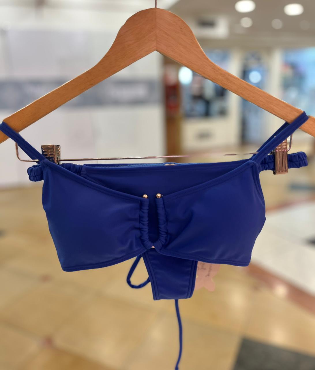 Confeccionada en lycra lisa color azul eléctrico. Bombacha arruchada semivedetina