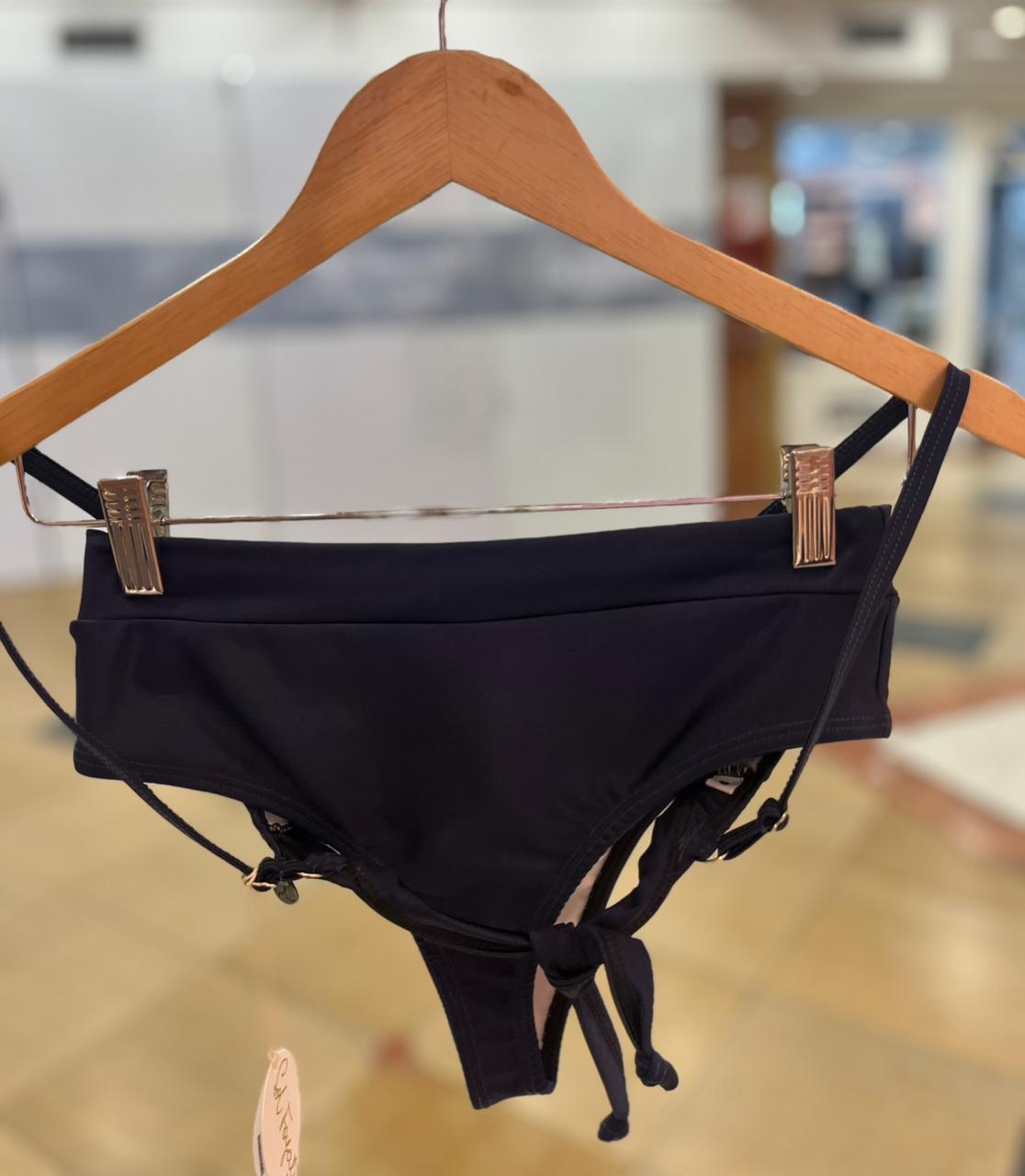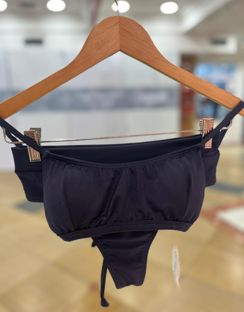 Bikini top texturada con push up desmontable. Con detalle de apliques resistentes al agua en los breteles. Bombacha tiro medio semivedetina.