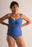 Tankini lisa con detalle de traba en remera y bombacha tiro medio; tiene breteles regulables. Esta integramente forrada. Tiene relleno fijo.